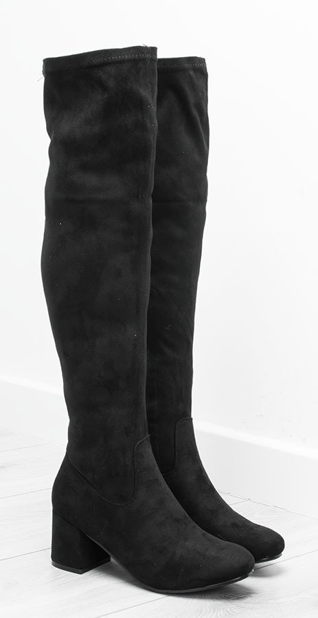 CZARNE ELASTYCZNE KOZAKI ZA KOLANO NA SŁUPKU LEXI