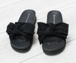 CZARNE GUMOWE KLAPKI NA PLATFORMIE KOKARDA POPPY
