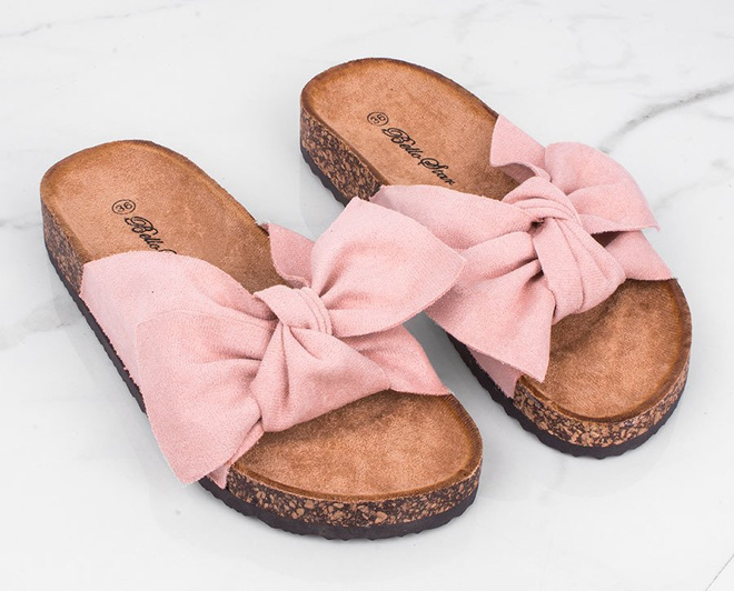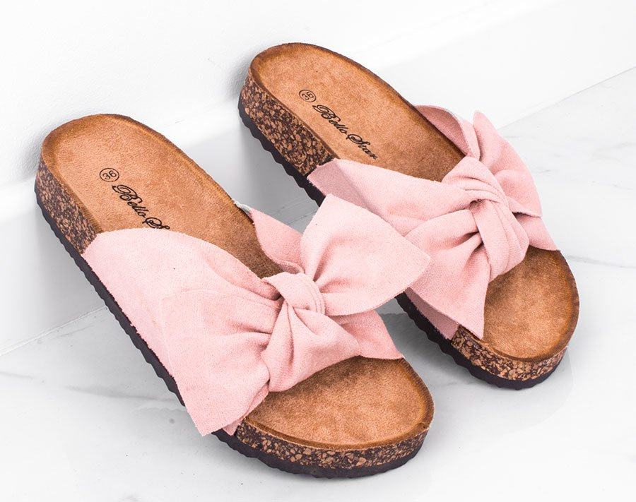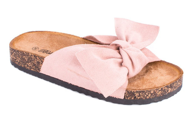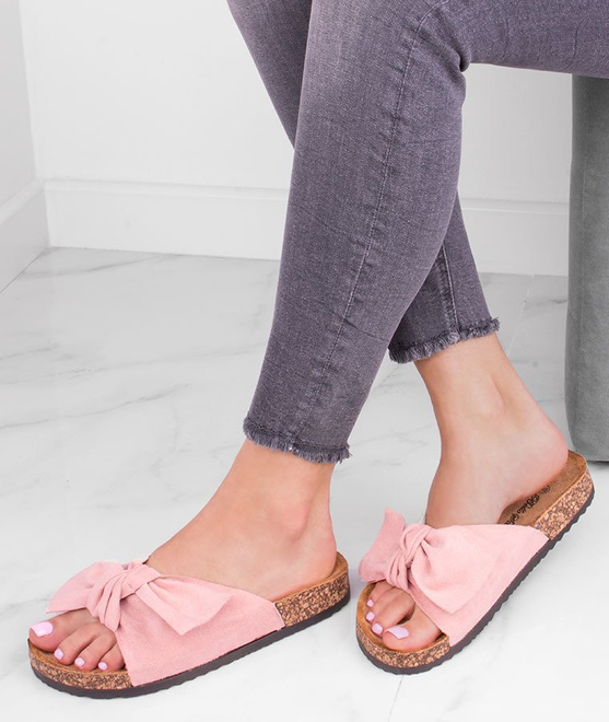 RÓŻOWE ZAMSZOWE KLAPKI Z KOKARDĄ CELIA
