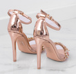 ZŁOTE LUSTRZANE, LAKIEROWANE SANDAŁKI NA SZPILCE. BARDZO KOBIECE I MODNE SANDAŁKI WYKONANE Z LAKIEROWANEJ SKÓRY EKOLOGICZNEJ