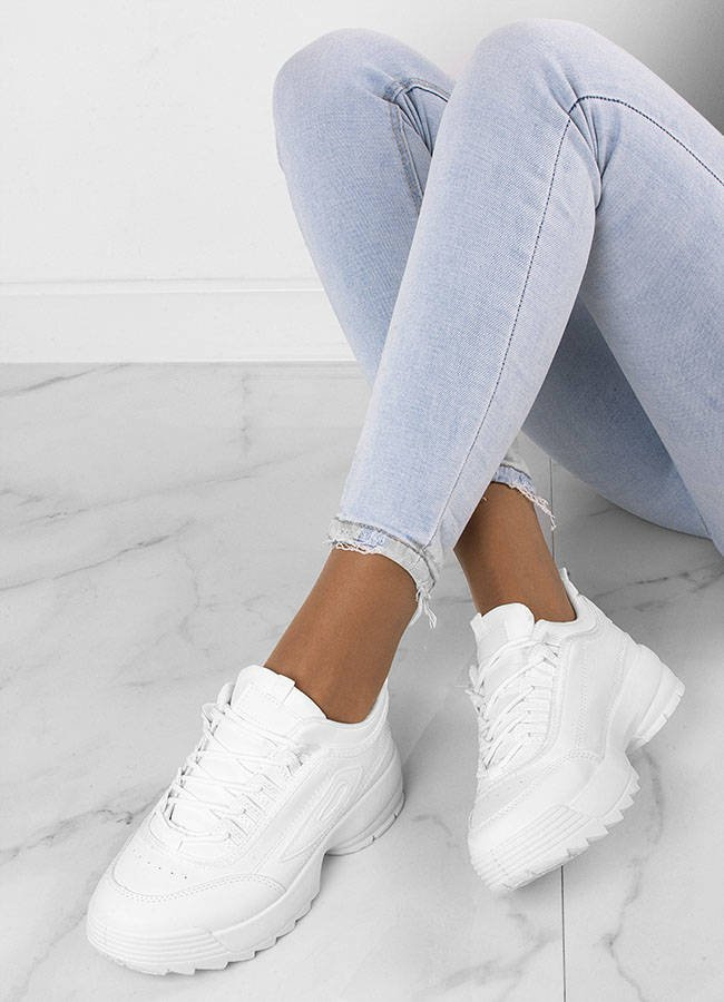 SPORTOWE BIAŁE SNEAKERSY TRAMPKI GRUBEJ PODESZWIE ESSENTIAL