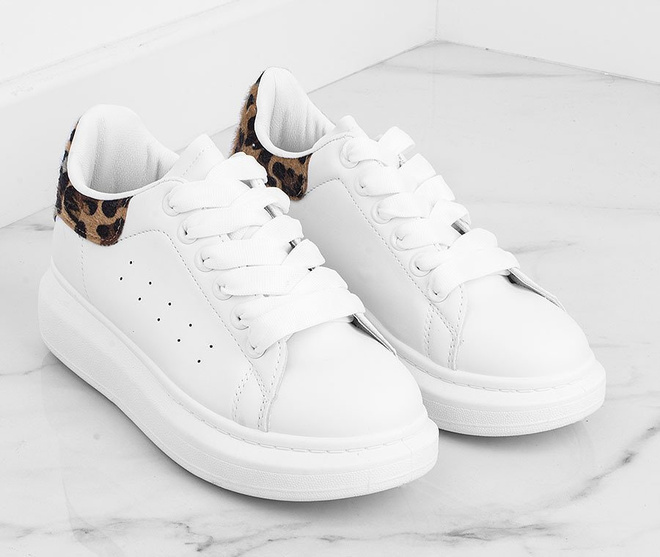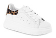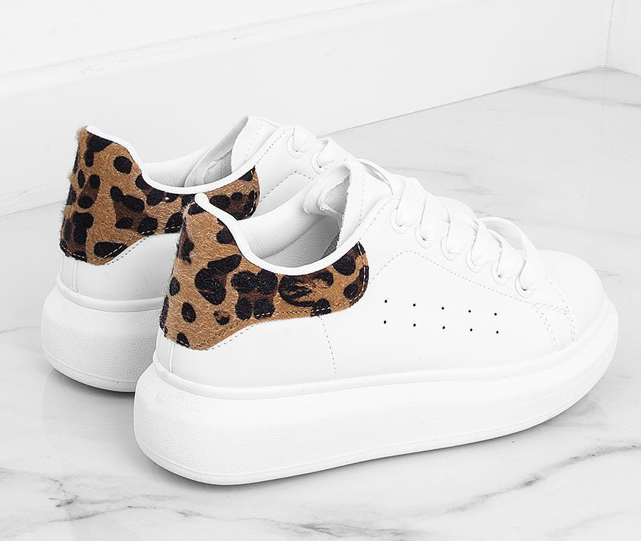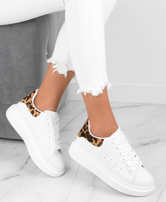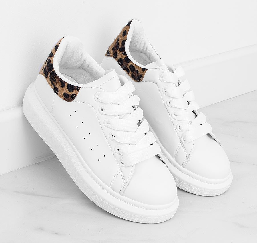 Białe sportowe sneakersy z panterkową wstawką na pięcie – Twój wybór na nadchodzący sezon