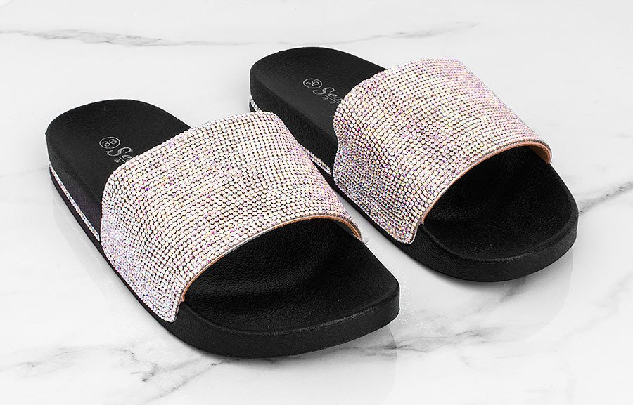 CZARNE GUMOWE KLAPKI Z CYRKONIAMI KATIS
