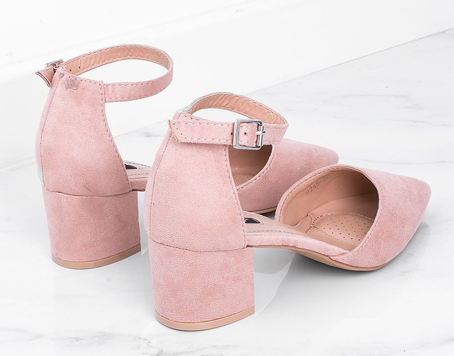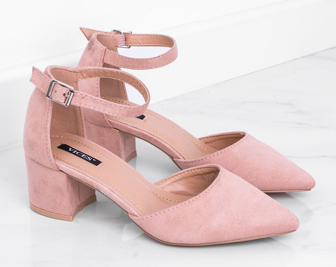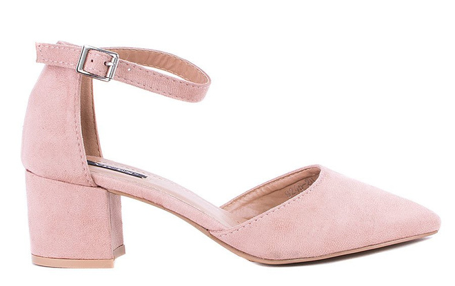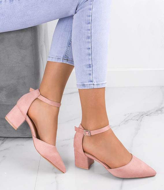 RÓŻOWE ZAMSZOWE CZÓŁENKA NA SŁUPKU W SZPIC HAZEL