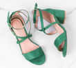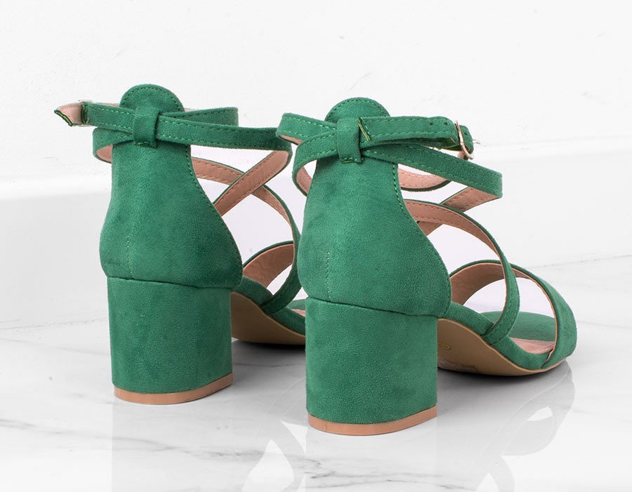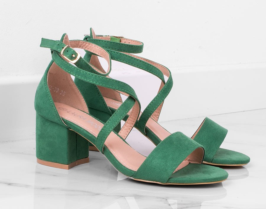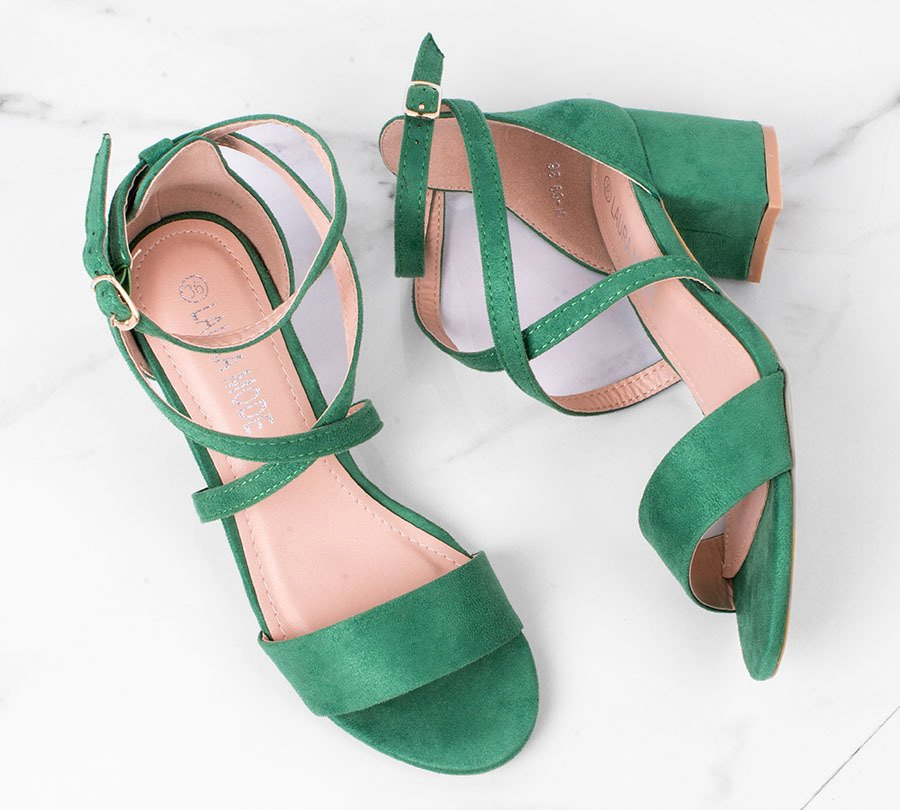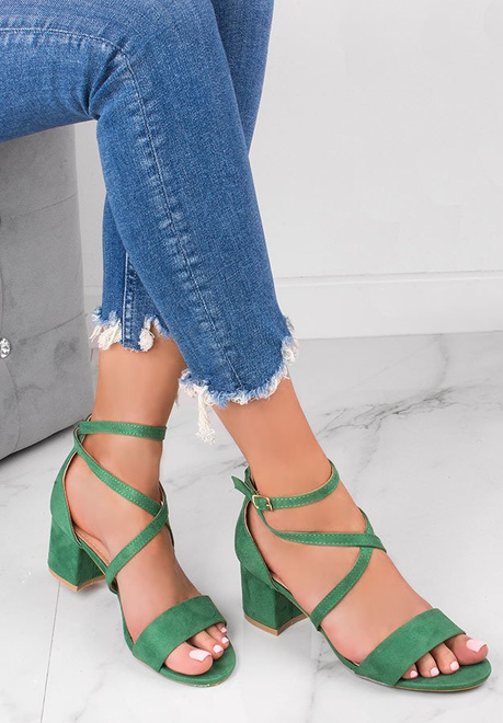 Zamszowe sandały na słupku z zapięciem wokół kostki. Buty na niskim, wygodnym i stabilnym słupku - modna alternatywa szpilek