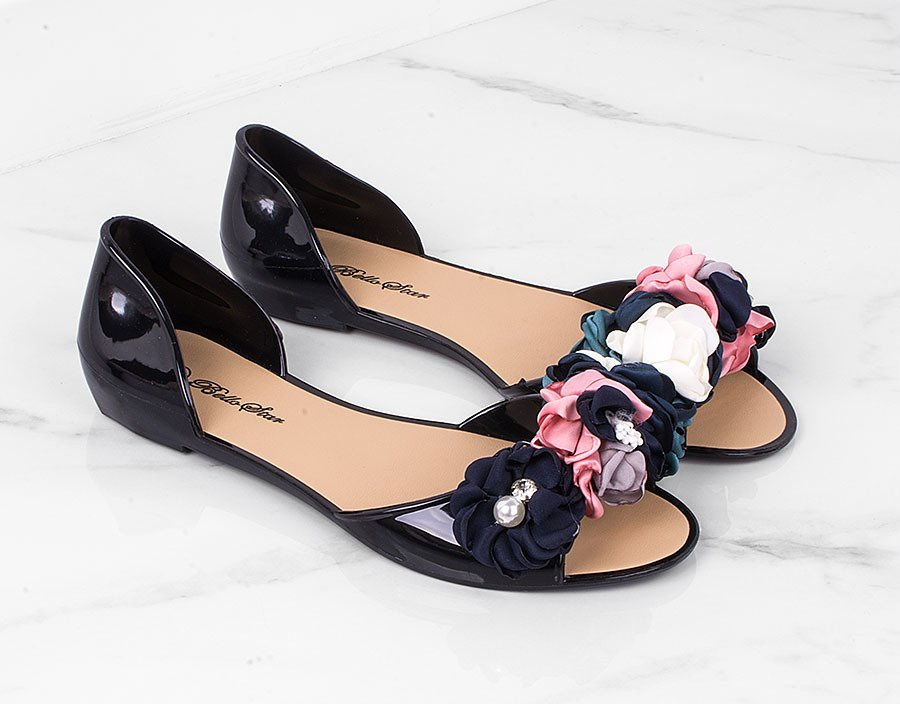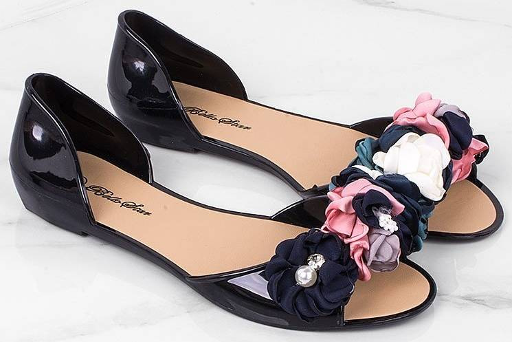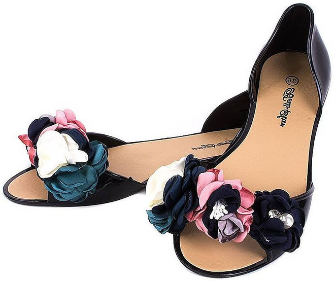 Lubisz chodzić w szpilkach, jednak Twoje stopy szybko się w nich męczą, dlatego czasem masz ochotę ściągnąć je i ubrać równie eleganckie obuwie na płaskiej podeszwie? Świetną alternatywą dla butów na obcasie będą gumowe baleriny z gustownym, modnym w tym sezonie kwiatowym zdobieniem na przodzie. Buty pięknie eksponują pedicure, dzięki wycięciu na palce, które w dodatku zapewnia stopom przewiew. Są bardzo lekkie, dzięki czemu nawet nie czuć, że ma się je na stopach. Meliski są ultrawygodne, więc możesz założyć je zawsze wtedy, gdy masz w planach dużo chodzić. Dobrze sprawdzą się na różnego rodzaju imprezach takich jak wesela i bale. Baleriny wykonane zostały z wysokiej jakości gumy, która jest łatwa w czyszczeniu, więc jeśli nie będziesz zapominać o systematycznej pielęgnacji, to będą służyć Ci dłużej niż jeden sezon.