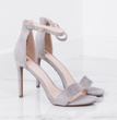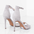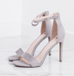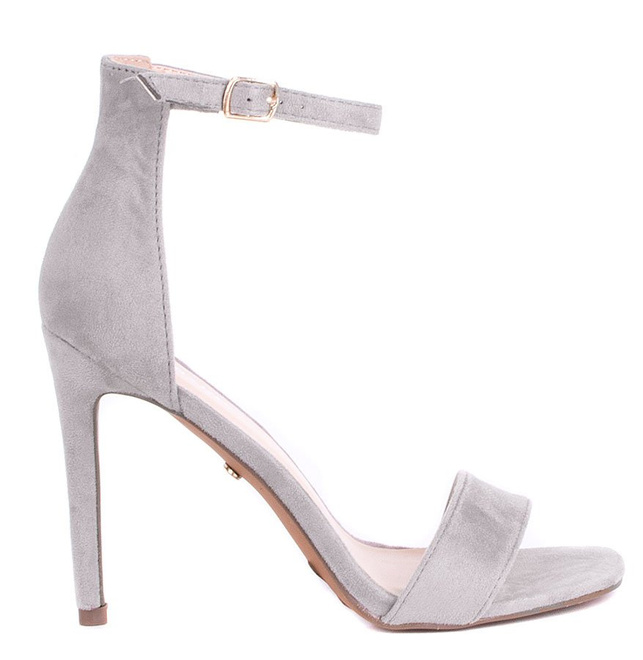 Zamszowe szpilki sandały zapinane wokół kostki. Buty wykonane z wysokiej jakości materiału syntetycznego doskonale imitującego zamsz. Wysoka i dobrze wyprofilowana szpilka sprawia, że buty są wygodne i eleganckie.