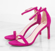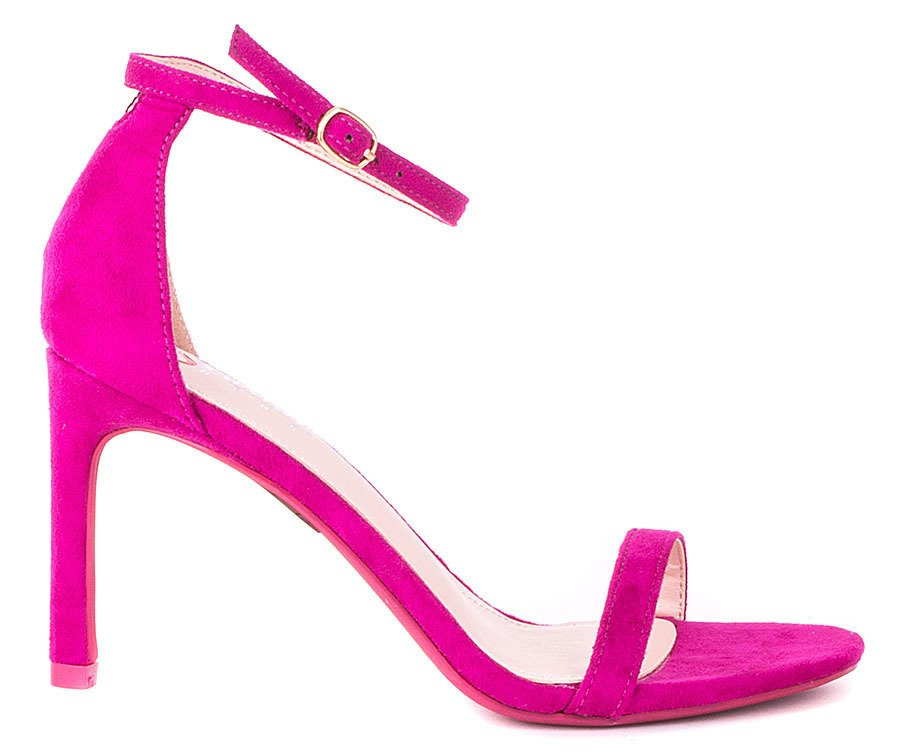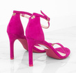 Zamszowe szpilki sandały zapinane wokół kostki. Buty wykonane z wysokiej jakości materiału syntetycznego doskonale imitującego zamsz. Wysoka i dobrze wyprofilowana szpilka sprawia, że buty są wygodne i eleganckie.