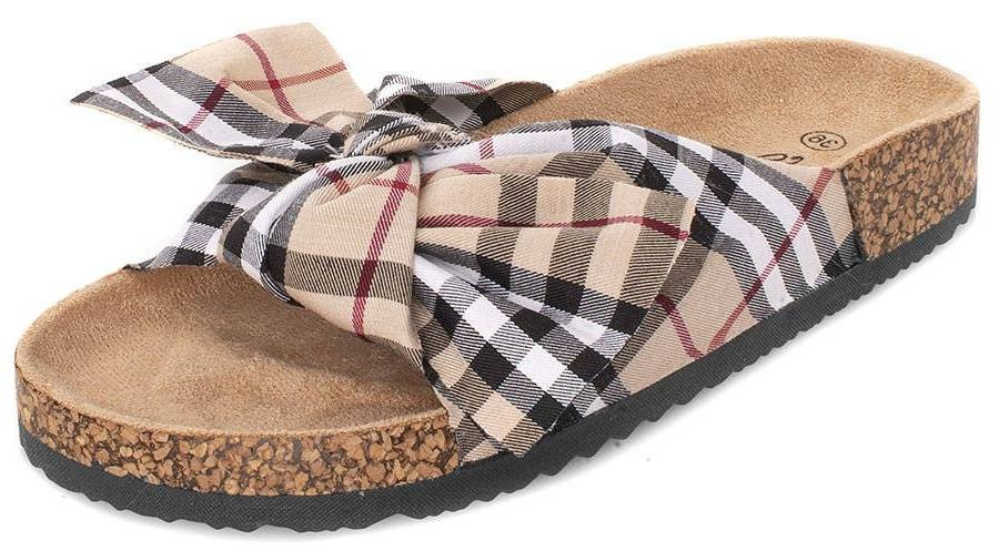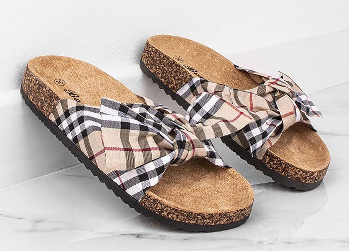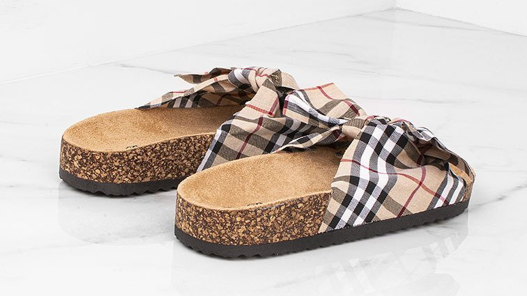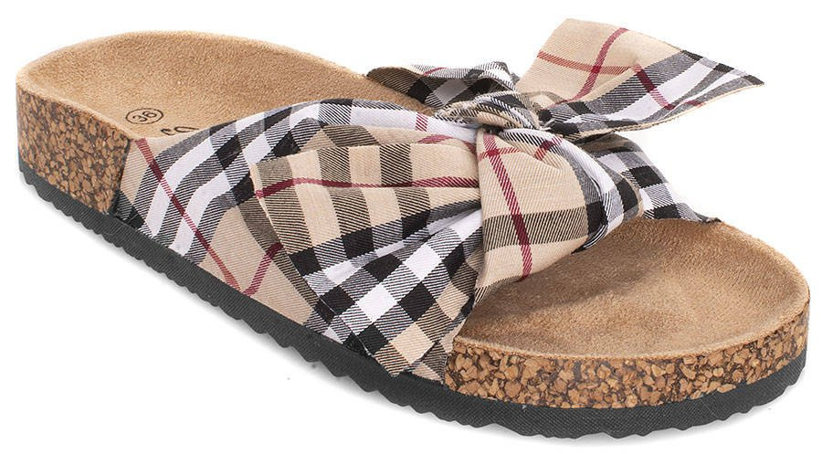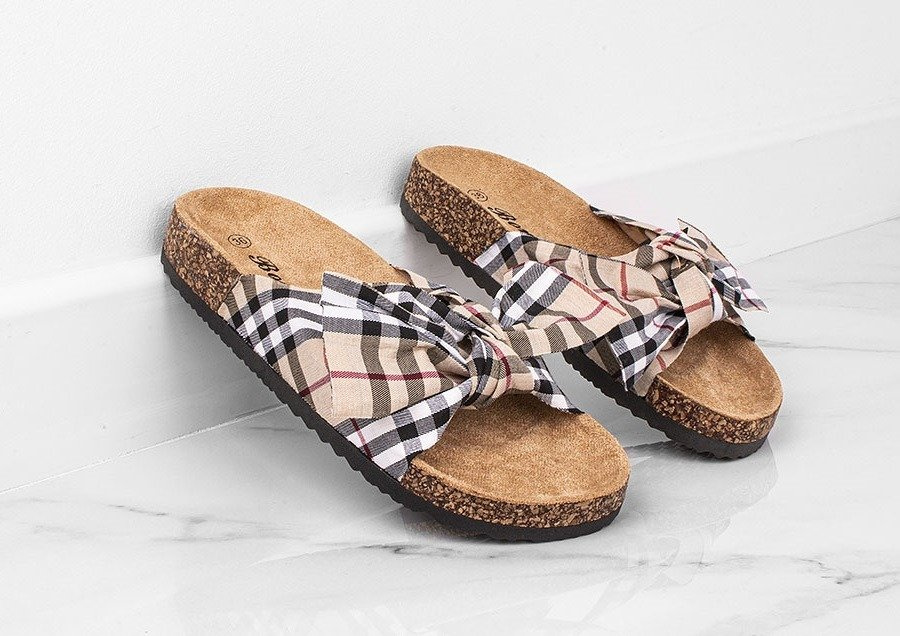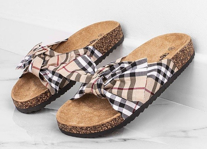 BEŻOWE KLAPKI W KRATKĘ NA KORKU MODDI