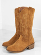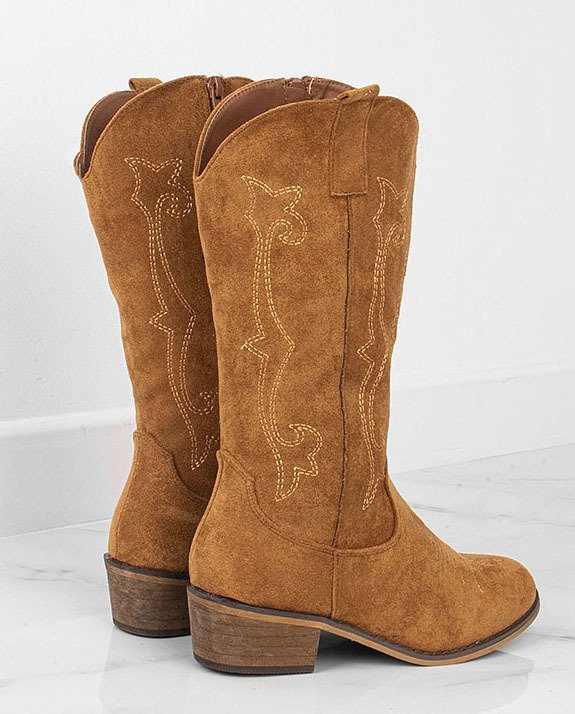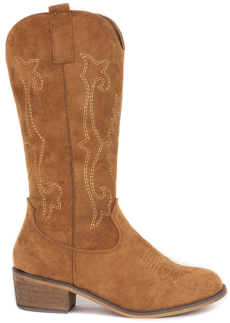 Piękne kowbojki wysokie z zamszu to propozycja dla kobiet, które cenią sobie kolor camel. Ta jasno-brązowa barwa idealnie pasuje do wielu ubrań, na przykład jeansów. Kowbojki nie mają niepotrzebnych dodatków, są to buty proste z ciekawym wykończeniem, które przypominają o korzeniach z Ameryką. Kowbojki umieszczono na obcasie o wysokości 4,5 cm. Sprawia to, że lepiej się prezentują, a ich noszenie jest komfortowe. To także zasługa miękkiej cholewki. Z prowadzeniem auta w tych butach również nie będzie najmniejszego problemu. Zasuwane są na zamek, ich zdejmowanie i wkładanie będzie więc szybkie i proste.