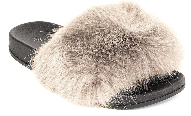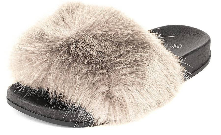 BEŻOWE GUMOWE KLAPKI Z FUTERKIEM FLUFFI