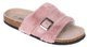 Białe klapki damskie, wygodne dzięki profilowanej podeszwie. Zdobione futerkiem i klamerką.