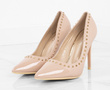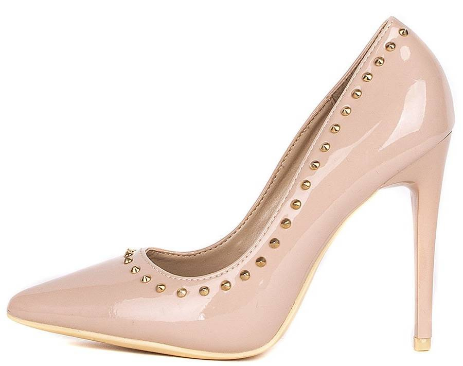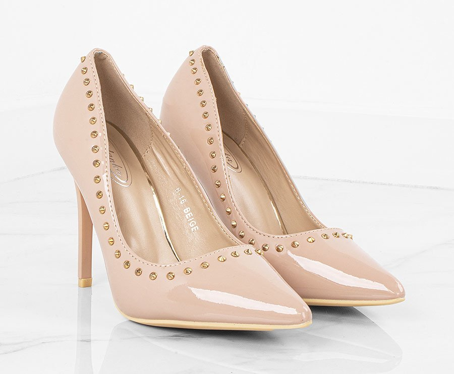 Beżowe szpilki w szpic z ćwiekami Cesi