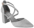 Srebrne, zamszowe czółenka na słupku w szpic Ivo