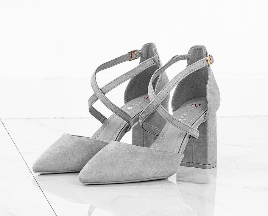 • Fason zakończony noskiem w szpic i dwoma krzyżującymi się na stopie paseczkami