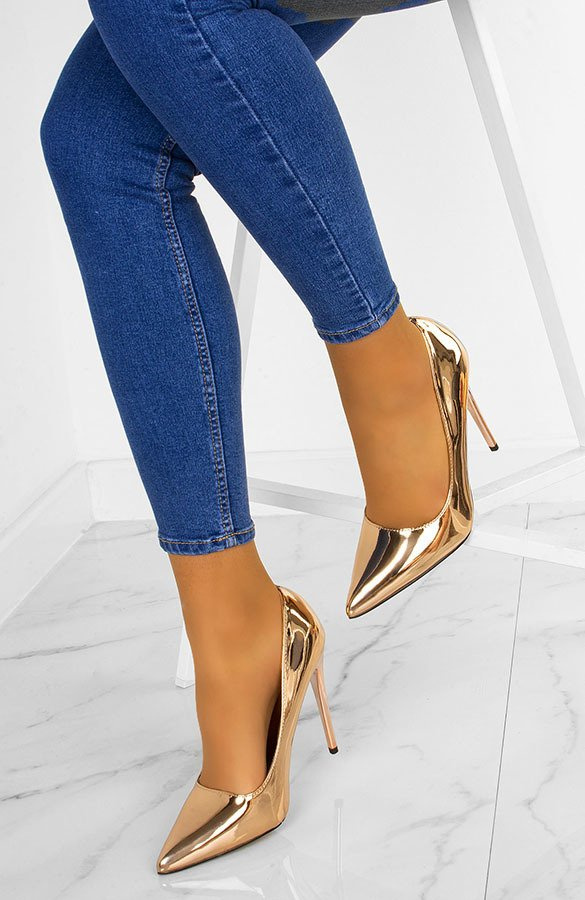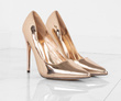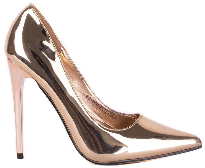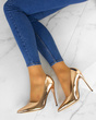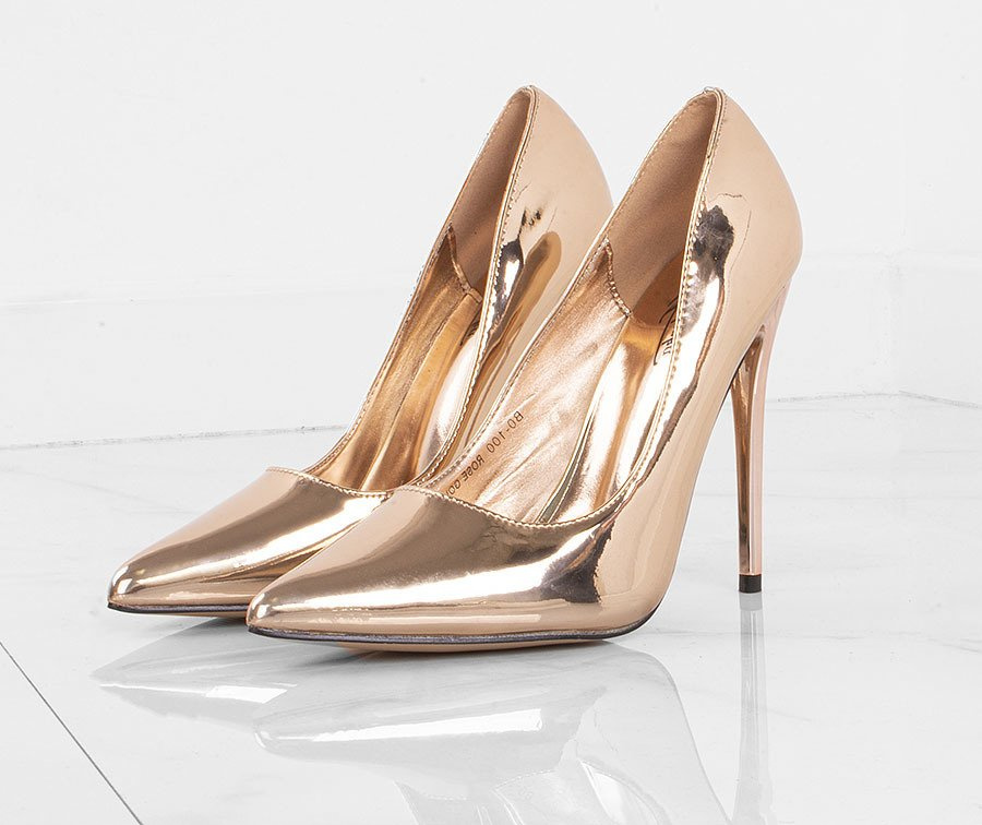 Szampańskie, lustrzane szpilki w szpic Kelins