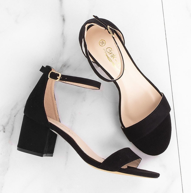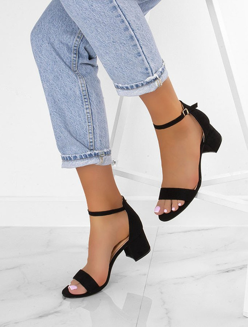 Czarne sandały na słupku Veriss