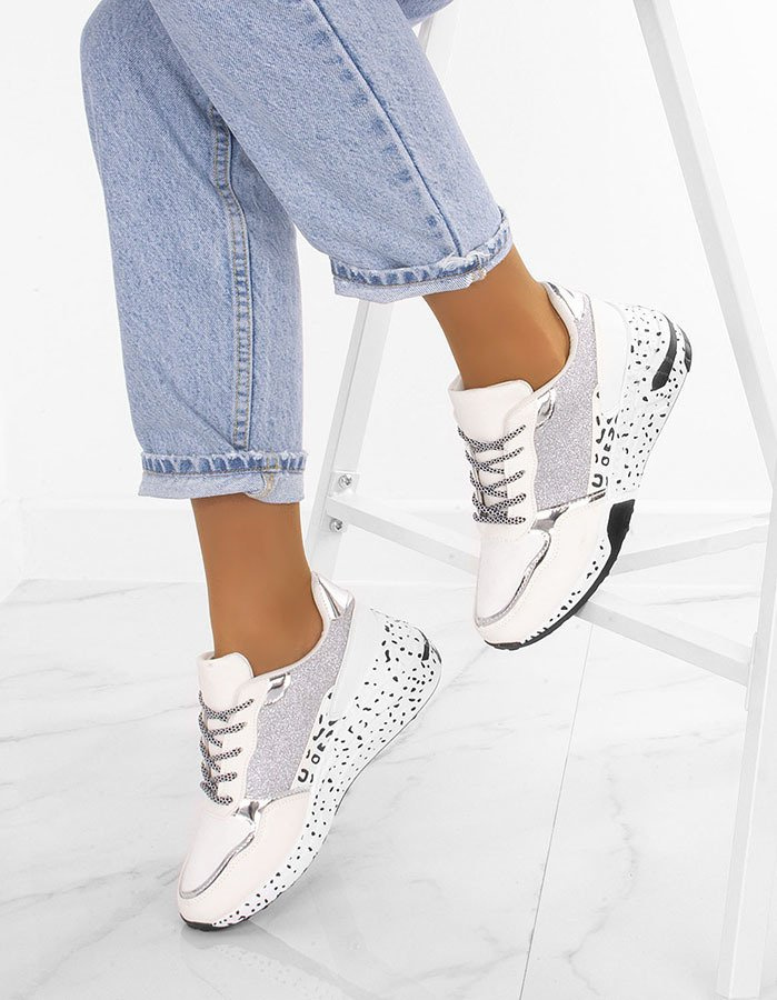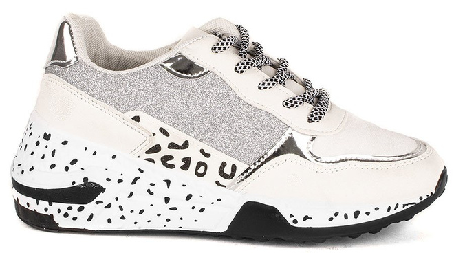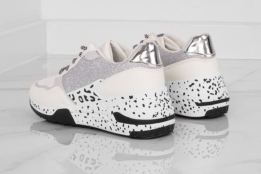 Modne SNEAKERSY na grubej podeszwie. Brokatowe zdobienie oraz cętki dodają im ekstrawaganckiego charakteru.