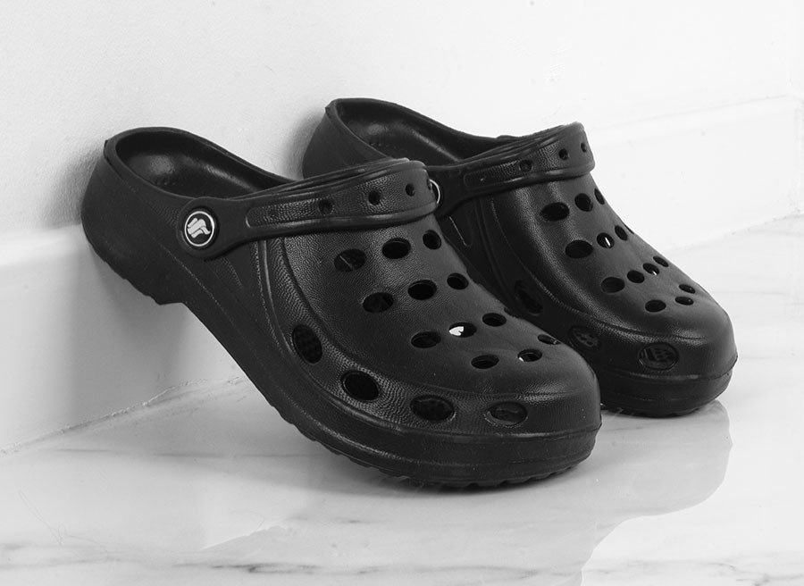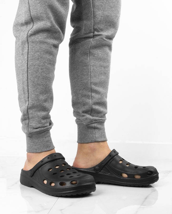 Potrzebujesz lekkiego obuwia o dużej odporności na czynniki zewnętrzne? Jeśli tak, to doskonałym rozwiązaniem mogą być czarne, lekkie klapki. Doskonale sprawdzą się podczas prac i wypoczynku na ogrodzie, pod prysznic w miejscach publicznych, takich jak basen, siłownia czy sauna, a także do codziennego noszenia w domu. Łączą w sobie wysoki poziom komfortu z solidnym wykonaniem i funkcjonalnością, dzięki czemu mają szerokie grono miłośników. Stały dostęp do powietrza oraz odpowiednia wentylacja zapobiegają poceniu się w czarnych chodakach. Uniwersalna i prosta konstrukcja świetnie pasują do niemal każdego ubioru.