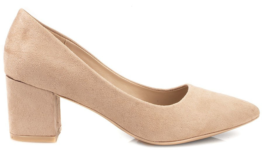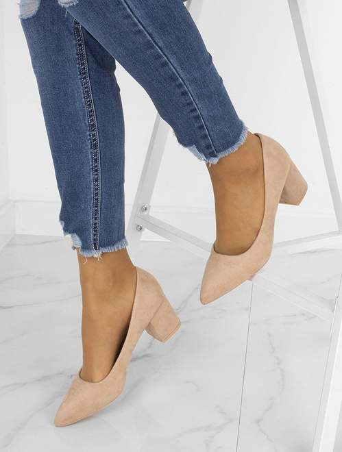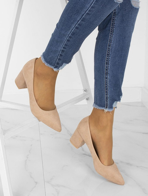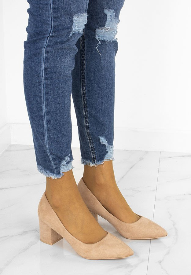BEŻOWE ZAMSZOWE CZÓŁENKA NA SŁUPKU LAURIS