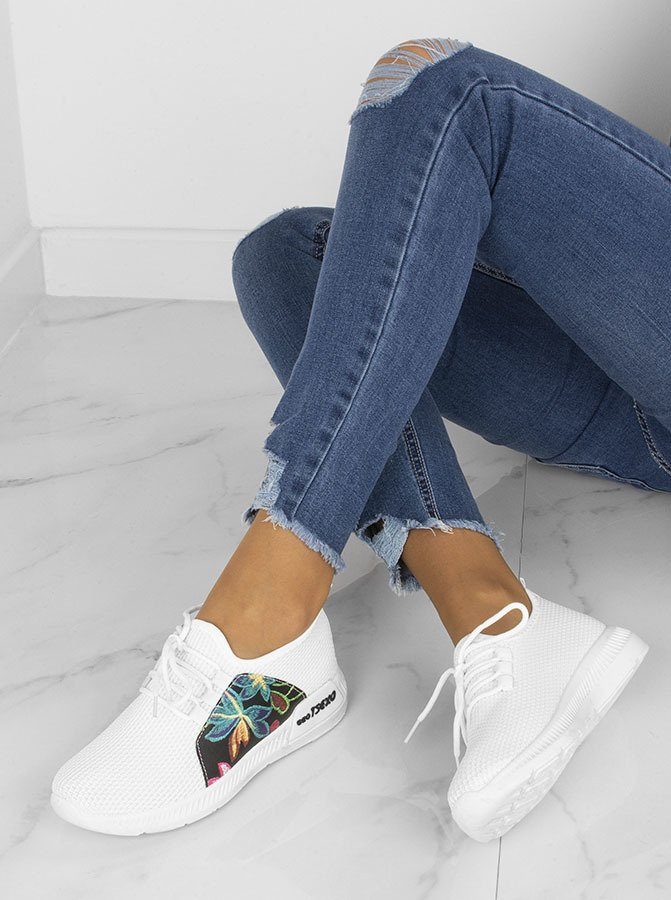 Sneakersy to ponadczasowe obuwie, które pokochały kobiety w każdym wieku. Przede wszystkim to trwałe obuwie posłuży Ci przez kilka sezonów. Model starannie wykonany z wysokiej jakości tworzywa sztucznego jest łatwy w czyszczeniu i odporny na zachlapanie. Lekka, sznurowaną cholewka dobrze układa się na stopie, a masywna i płaską, gumowa podeszwa doskonale amortyzuje każdy krok, a także optycznie wysmukla całą sylwetkę i wydłuża nogi. Natomiast noski o zaokrąglonym kształcie nie uciskają palców, tym samym zapewniając wysoki poziom komfortu każdego dnia.