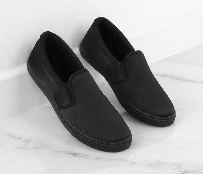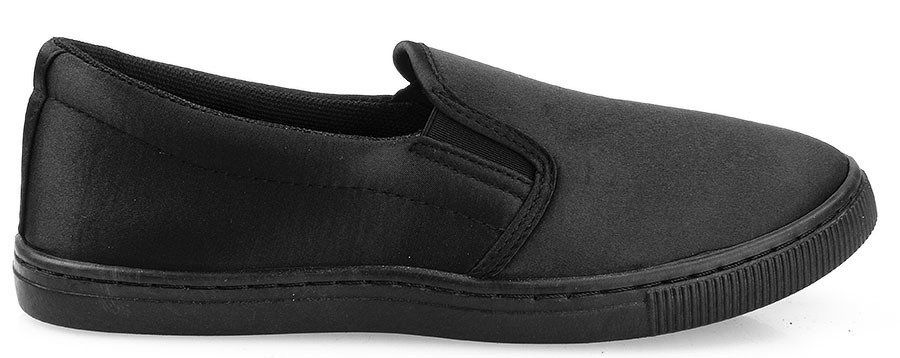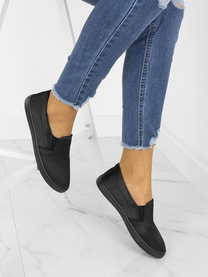Wsuwane tenisówki to model, który pokochały kobiety na całym świecie za ich maksymalnie minimalistyczną, uniwersalną formę, a także dlatego, że trampki slip on nie mają sznurowadeł i błyskawicznie można je włożyć i zdjąć. Niezwykle lekkie obuwie osadzone na płaskiej, gumowej podeszwie, która doskonale amortyzuje stopę, jest idealne do noszenia przez cały dzień. Zaokrąglone noski nie uciskają palców, a klasyczny, czarny kolor pasuje do każdego outfitu.