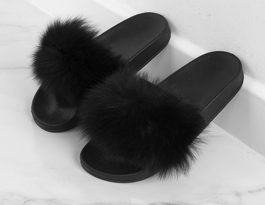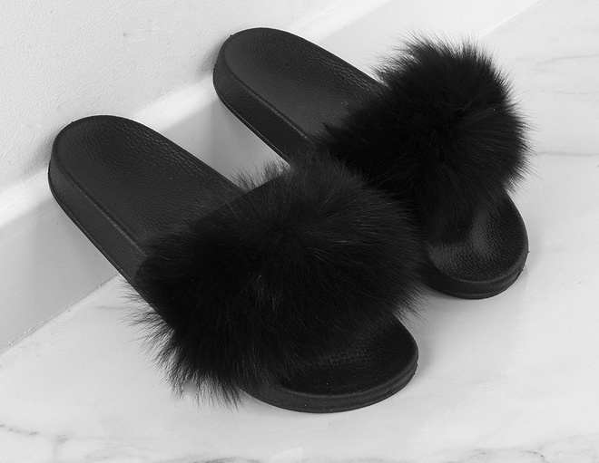Gustowne, czarne klapki z futerkiem są idealne na co dzień