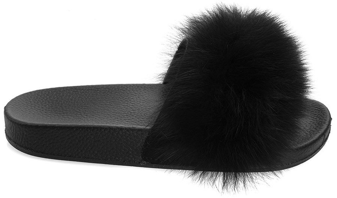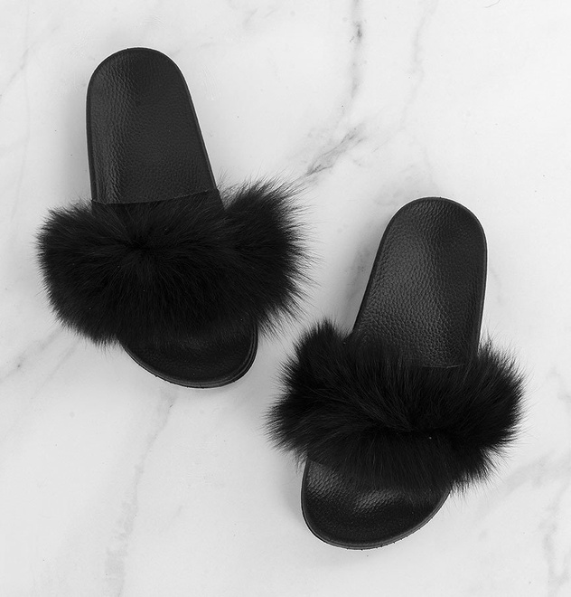 Czarne klapki z futerkiem w tym samym kolorze to obuwie, które zastąpi Ci kapcie i pozwoli wyróżnić się z tłumu podczas ciepłych, wiosennych i letnich dni. Modne klapki, których minimalistyczny design doskonale komponuje się z każdą miejską stylizacją, posiadają tysiące wielbicielek na całym świecie, które już doceniły wygodę, jaką oferują prezentowane buty. Wszystko dzięki idealnie wyprofilowanej podeszwie wykonanej z wysokiej jakości gumy, która została zakończona płaskim obcasem i zapewnia wysoki komfort noszenia, nawet podczas wielogodzinnych aktywności.
