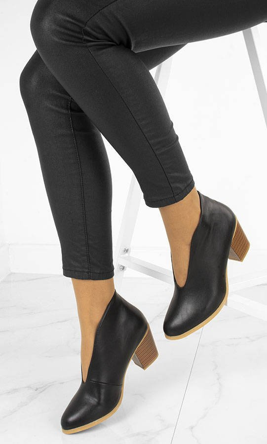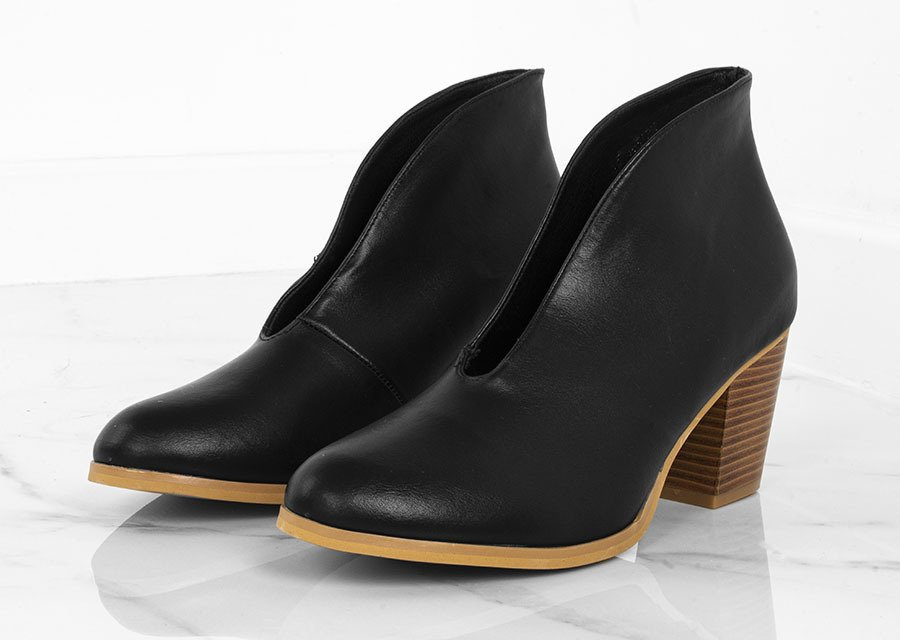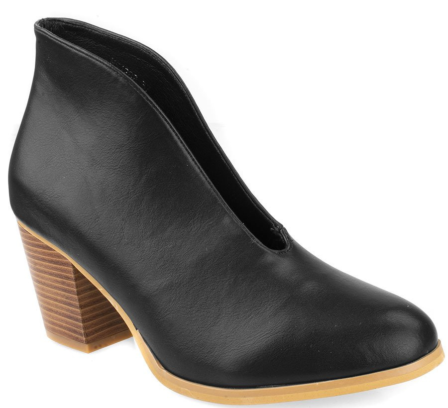 Czarne, wsuwane botki to doskonała propozycja dla wszystkich miłośniczek wygody i kobiecego, eleganckiego stylu. Osadzone na słupku o wysokości 7 cm gwarantują stabilizację i wysoki komfort podczas każdej sytuacji, estetyczne wycięcie zaś pozwala szybko je włożyć i ściągnąć. Gładkie botki optycznie wydłużają i wysmuklają nogi, a zaokrąglony nosek nie uciska palców i nie wydłuża stopy, co z pewnością docenią kobiety noszące większe rozmiary. Prezentowany model to idealne obuwie, które podczas codziennych czynności daje stopom nieocenioną przestrzeń, o której marzą wszystkie kobiety pod koniec ciężkiego, aktywnego dnia.