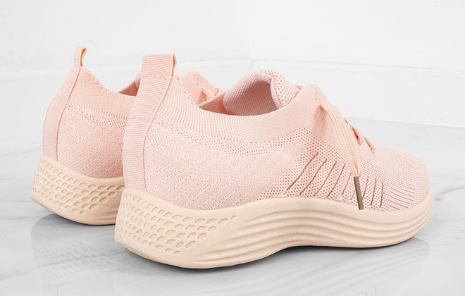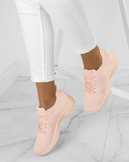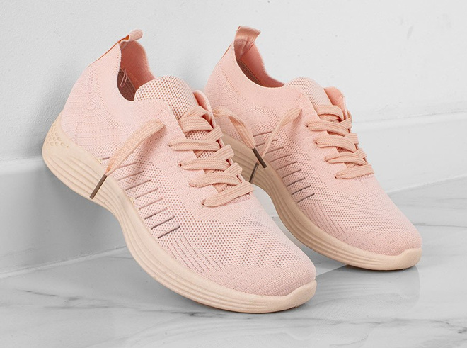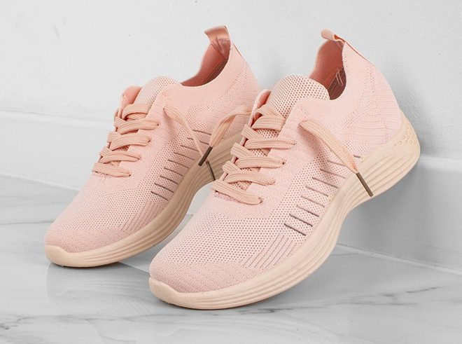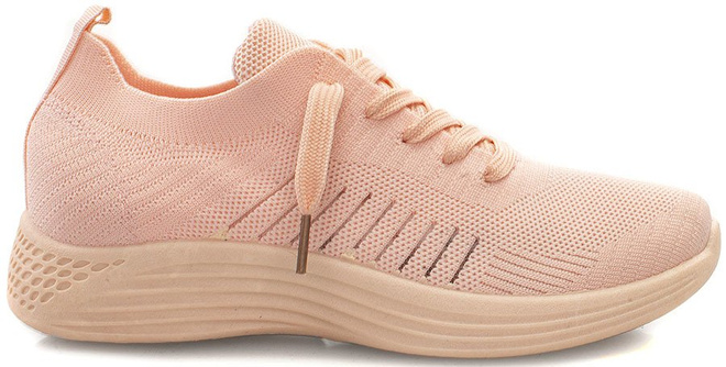 Lekkie buty sportowe sznurowane, na płaskiej podeszwie. Sznurówki w kolorze butów. Delikatne przeszycia i wytłoczenia.