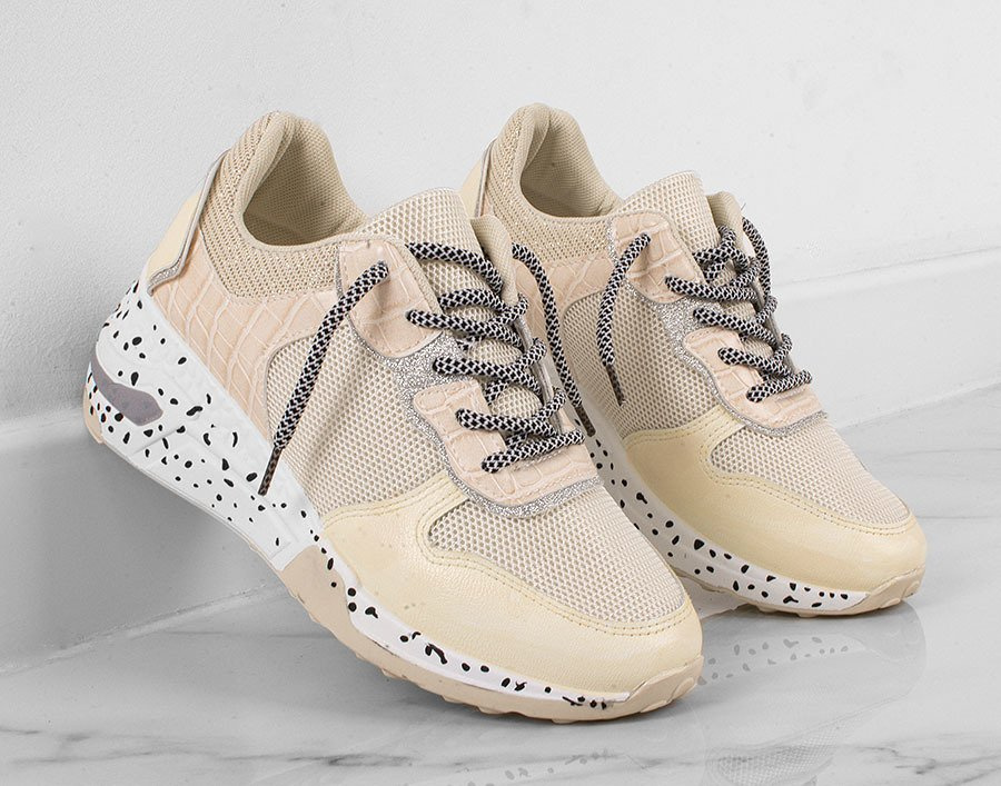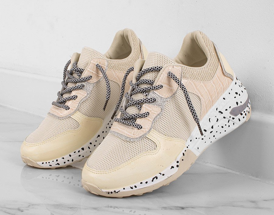 • Sportowe sneakersy FORSE na grubej cętkowanej podeszwie. Sznurowane. To model, który musisz mieć w swojej szafie - połączenie chunky sneakers ze zwierzęcym nadrukiem!
