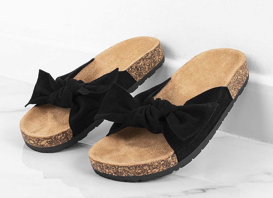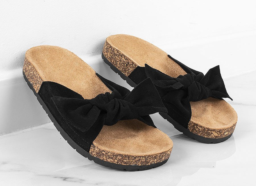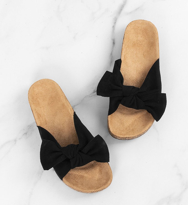 Nasz bestseller w tym sezonie - najmodniejsze klapki na wygodnej korkowej podeszwie, w kolorze czarnym.