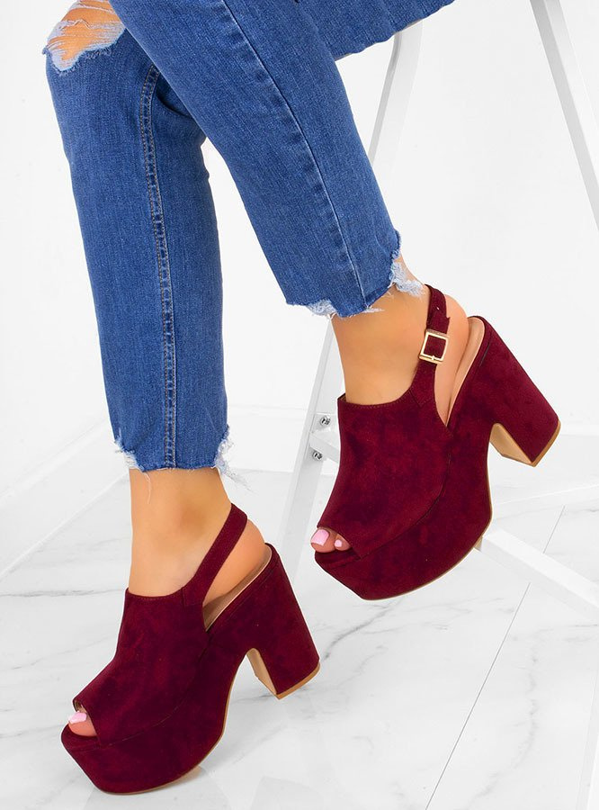 BORDOWE ZAMSZOWE SANDAŁY NA PLATFORMIE BONJOUR