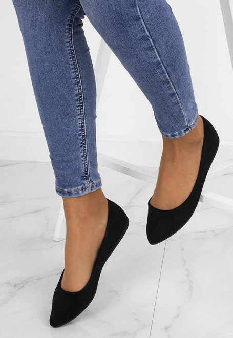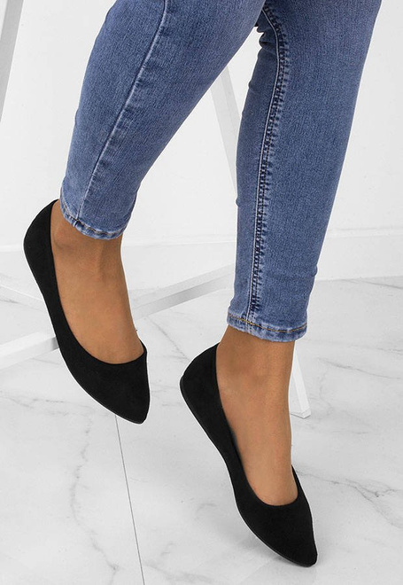 ZAMSZOWE CZARNE BALERINKI W SZPIC MILLA