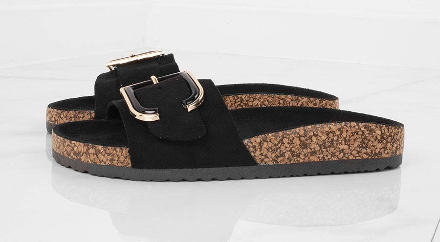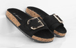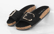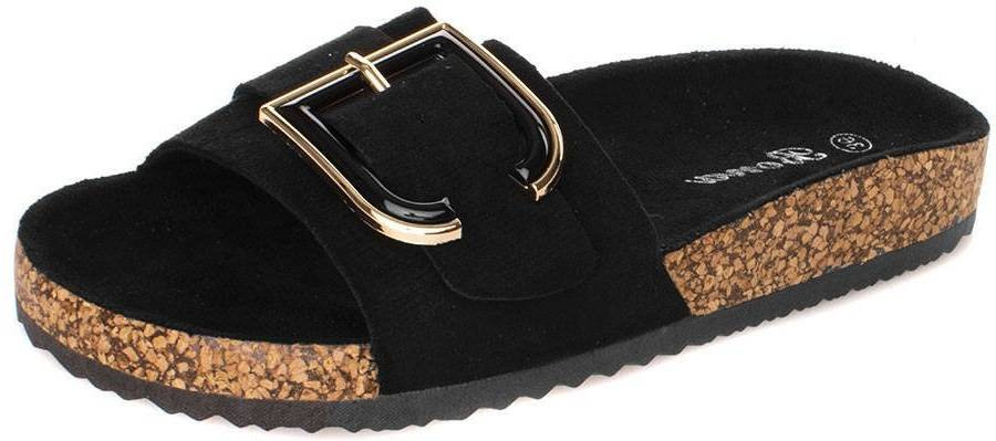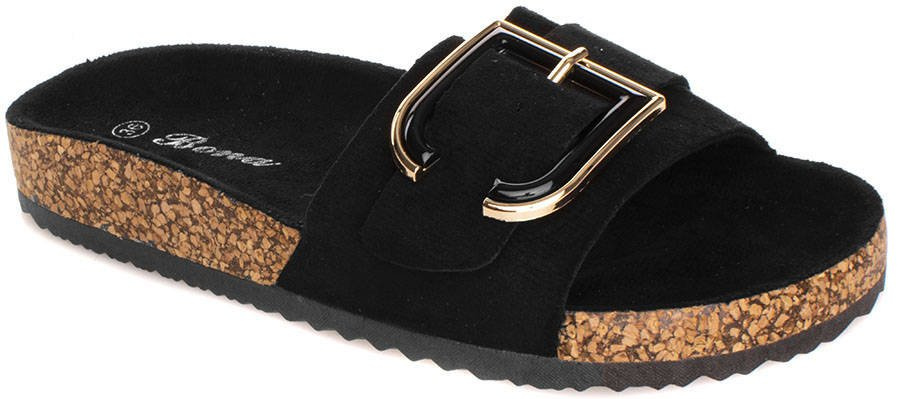 CZARNE ZAMSZOWE KLAPKI NA KORKU Z KLAMRĄ VERONI