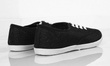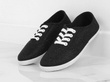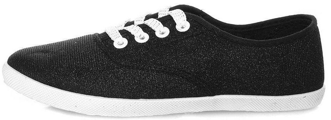 Błyszczące, czarne trampki do kostki o prostym, klasycznym kroju.