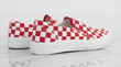 CZERWONE NISKIE TRAMPKI W KRATKĘ SLIP ON NADIES