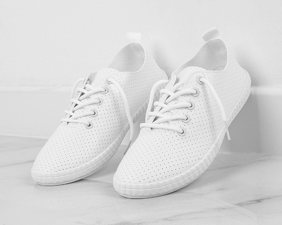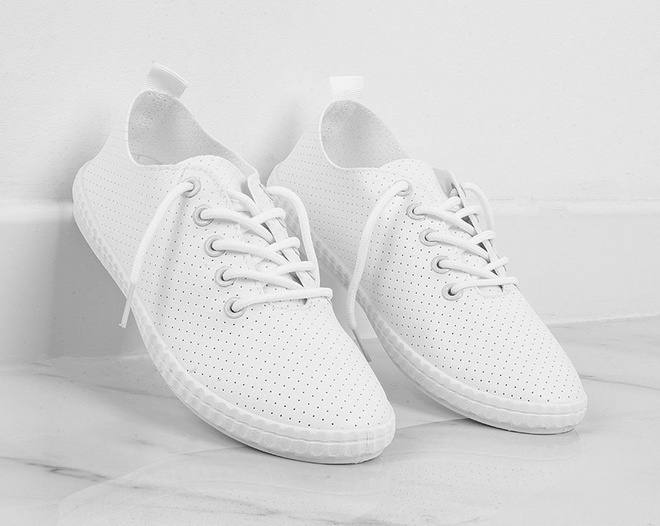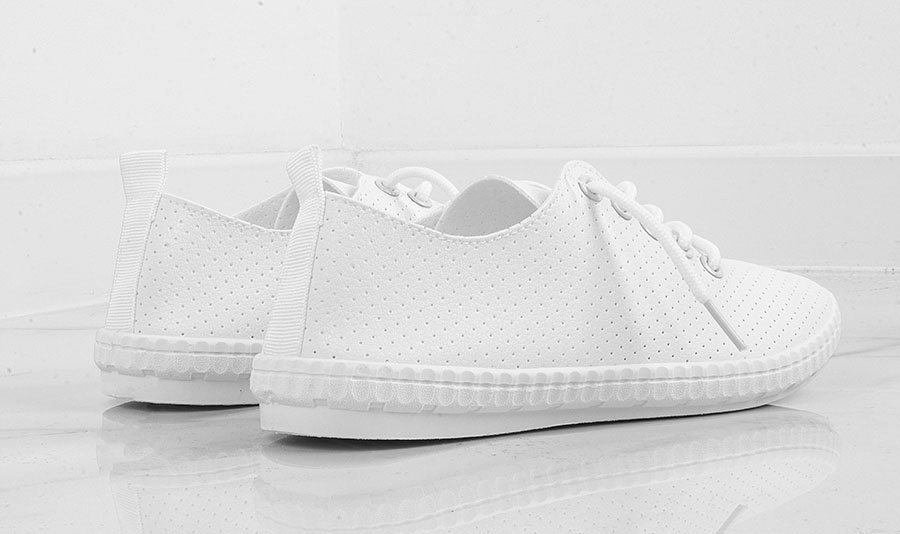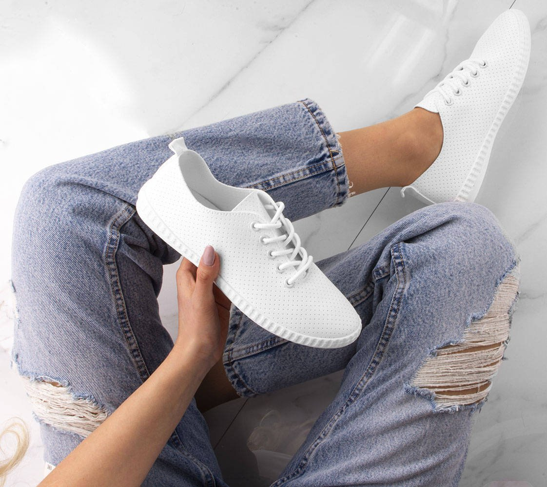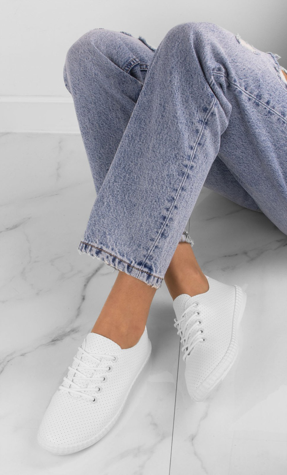 Wygodne, białe trampki. Wykonane z syntetycznej skóry. Doskonałe na letnie spacery.