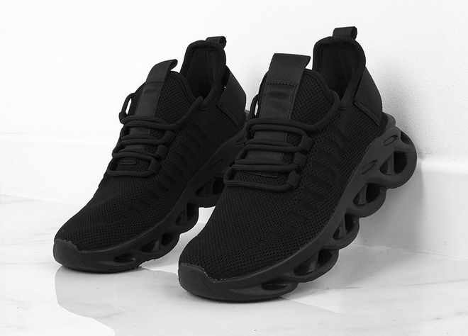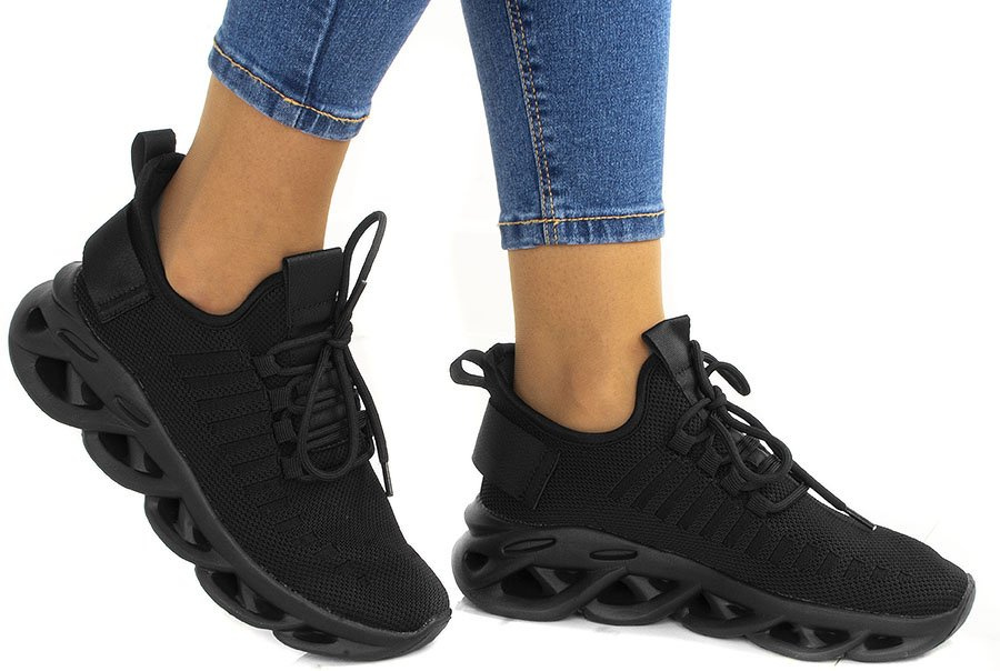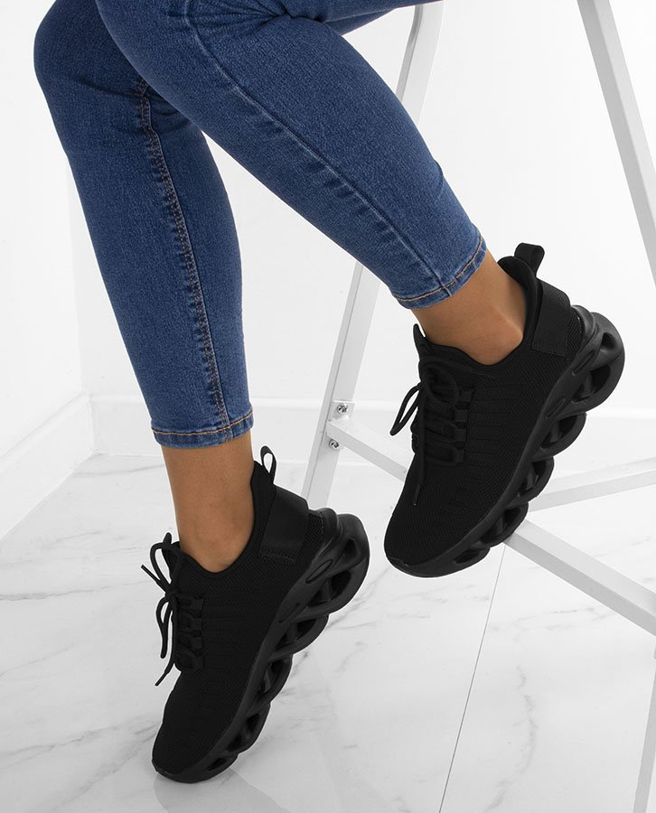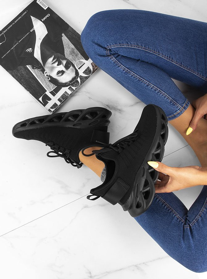 • Czarne sneakersy w miejskim stylu, z wycinaną podeszwą. Wykonane z przewiewnego materiału, co zapewni stopom odpowiednią wentylację przez cały dzień. Lekkie, wygodne, wszechstronne.