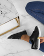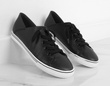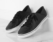 Czarne, niskie tenisówki na białej podeszwie. Buty wykonane z ekologicznej skóry. Wygodne i przyjazne środowisku.