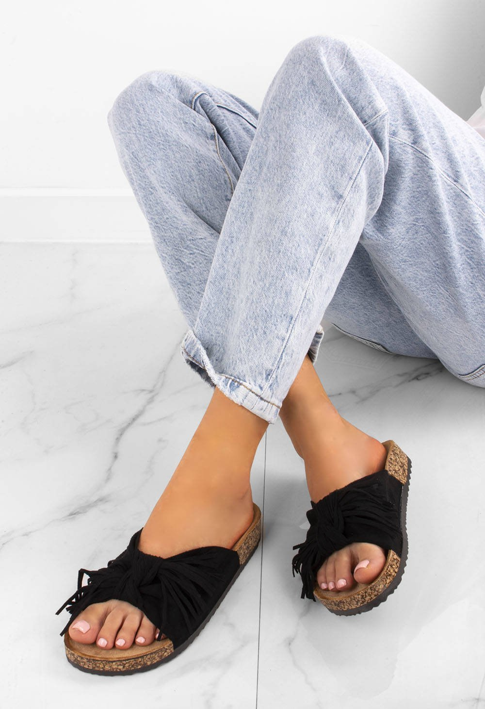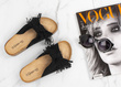 CZARNE ZAMSZOWE KLAPKI Z FRĘDZLAMI CELIA