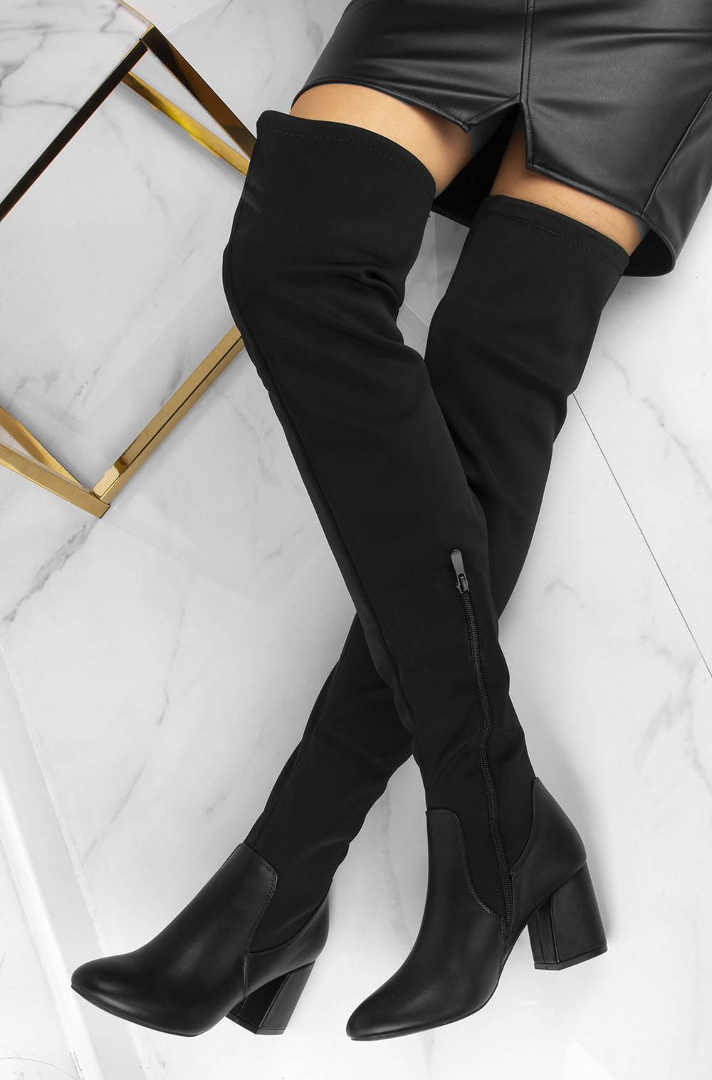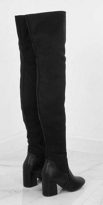 Te czarne kozaki są wykonane z lycry, dzięki czemu doskonale dopasowują się do każdej łydki. Nadadzą charakteru każdej stylizacji i doskonale sprawdzą się w sezonie jesienno-zimowym.