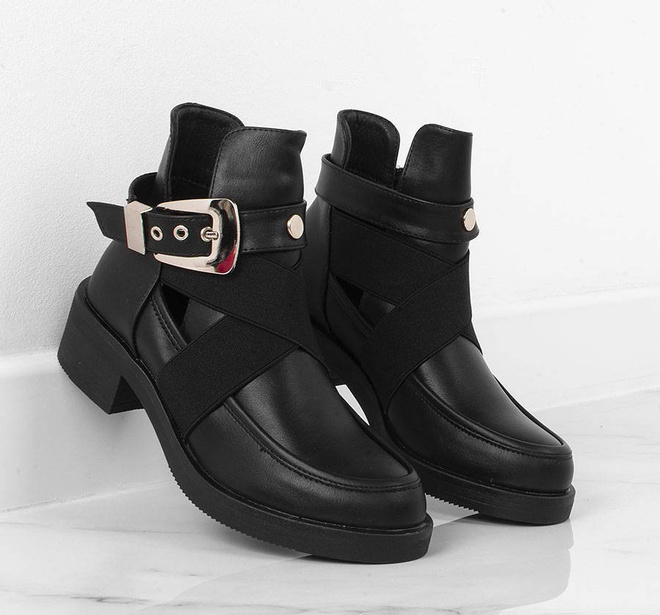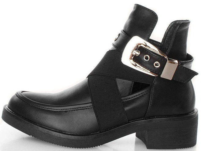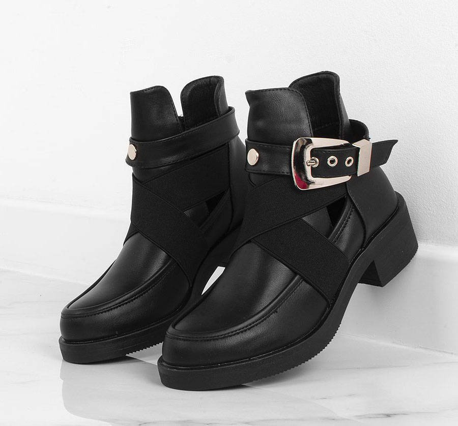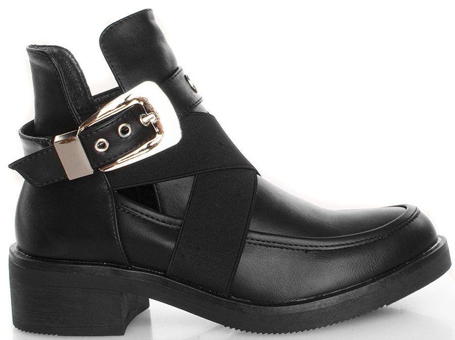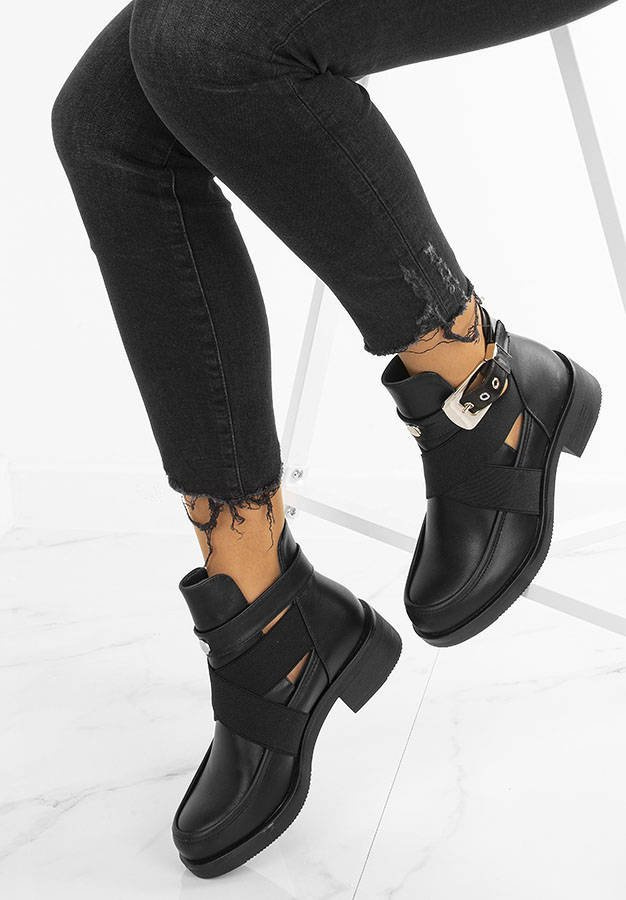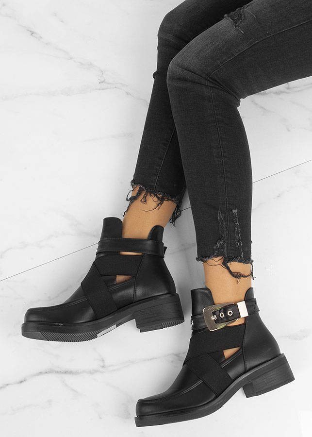 CZARNE SKÓRZANE BOTKI Z WYCIĘCIAMI NENCY