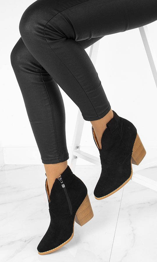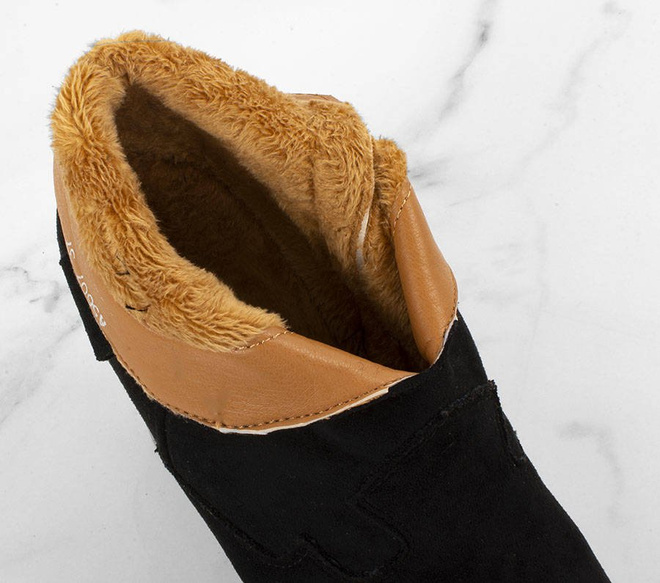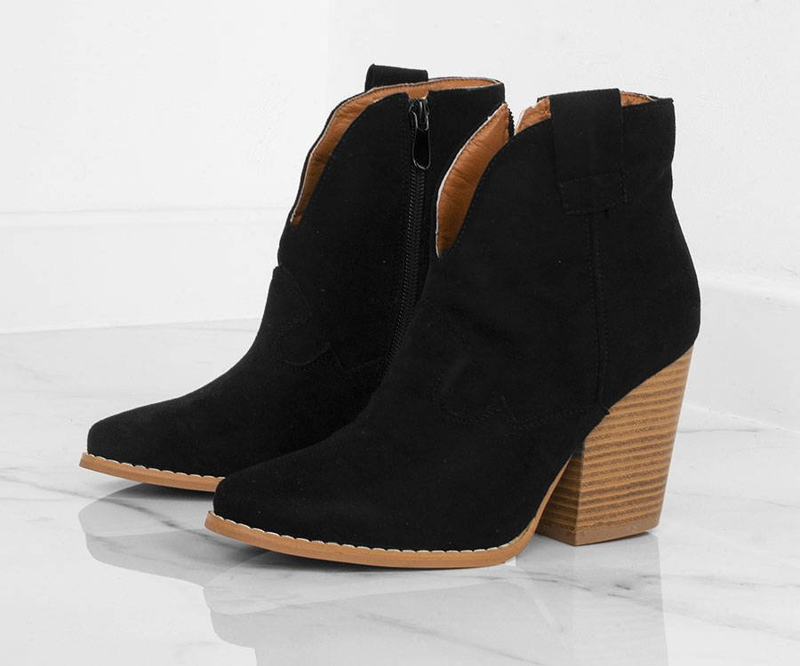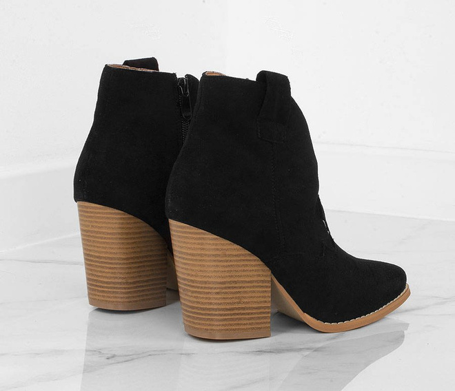 Botki w stylu kowbojek w na stabilnym wygodnym słupku. Wykonany z materiału zamszowego w pięknym kolorze beżowym. W środku mają miłe w dotyku ocieplenie. Lekko wycięte z przodu.