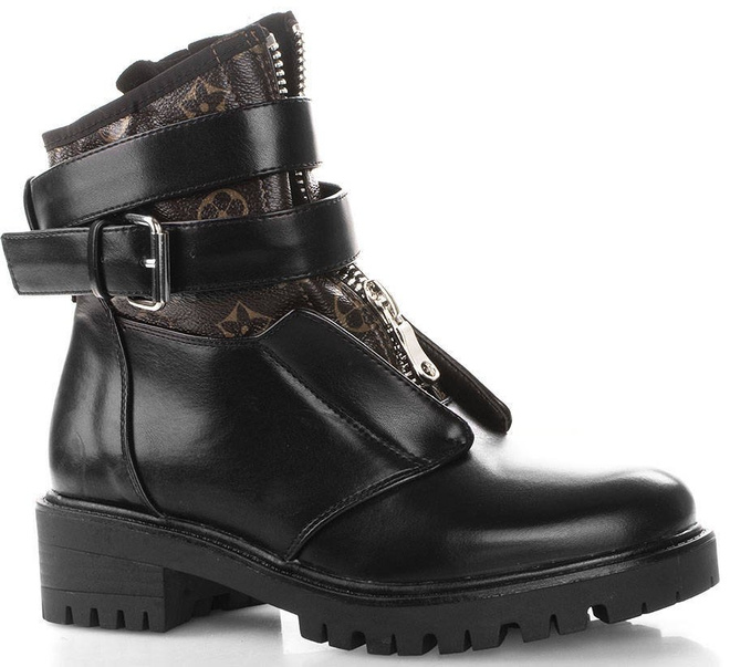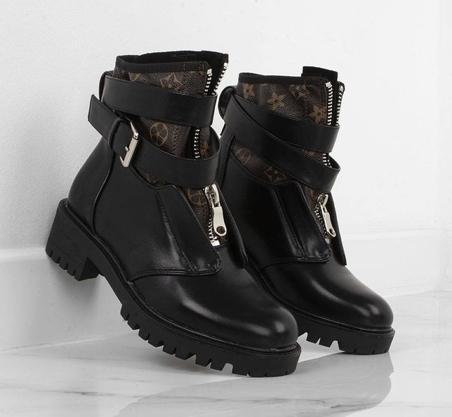 Stylowe botki damskie wykonane ze skóry ekologicznej, na grubszej, wygodnej podeszwie. Model posiada zapięcie w postaci zamka, który również pełni funkcję ozdoby.