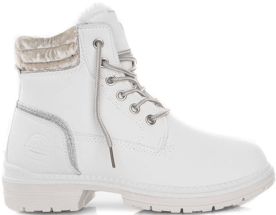 • Białe sznurowane damskie trapery, ocieplane grubym futerkiem (również na wkładce wewnętrznej). Sprawdzą się idealnie na jesień i zimę. Stabilne dzięki podeszwie typu traper.