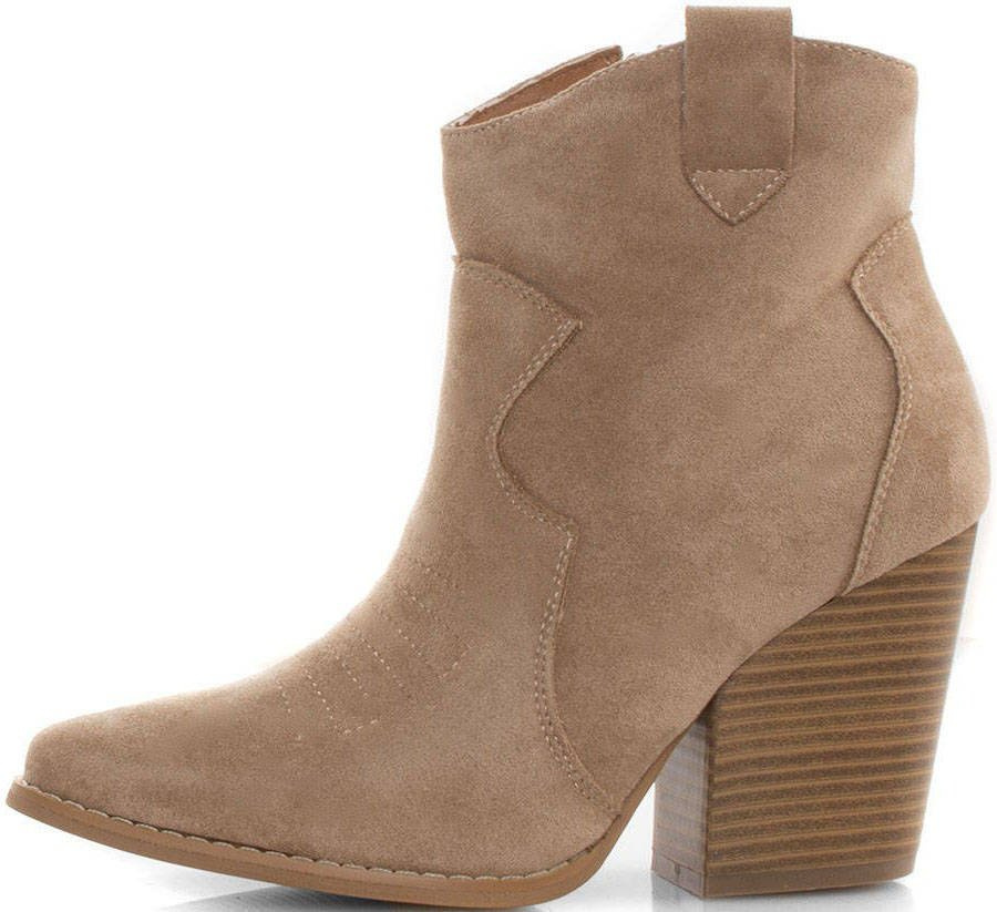 Botki w stylu kowbojek w na stabilnym wygodnym słupku. Wykonany z materiału zamszowego w pięknym kolorze. W środku mają miłe w dotyku ocieplenie. Doskonałe do wielu stylizacji!