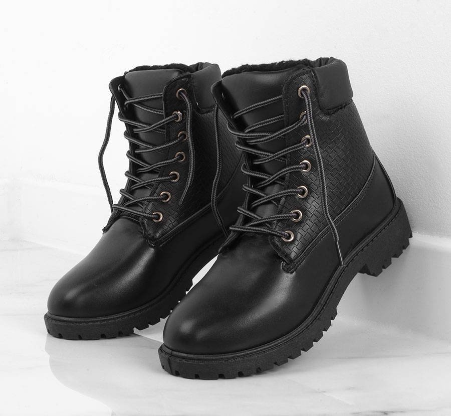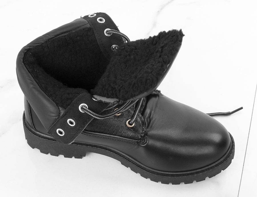 • Solidne czarne trapery wykonane ze skóry ekologicznej. W środku ocieplone kożuszkiem. Model sznurowany co ułatwia zakładanie i zdejmowanie. Traperki idealne na zimę!
