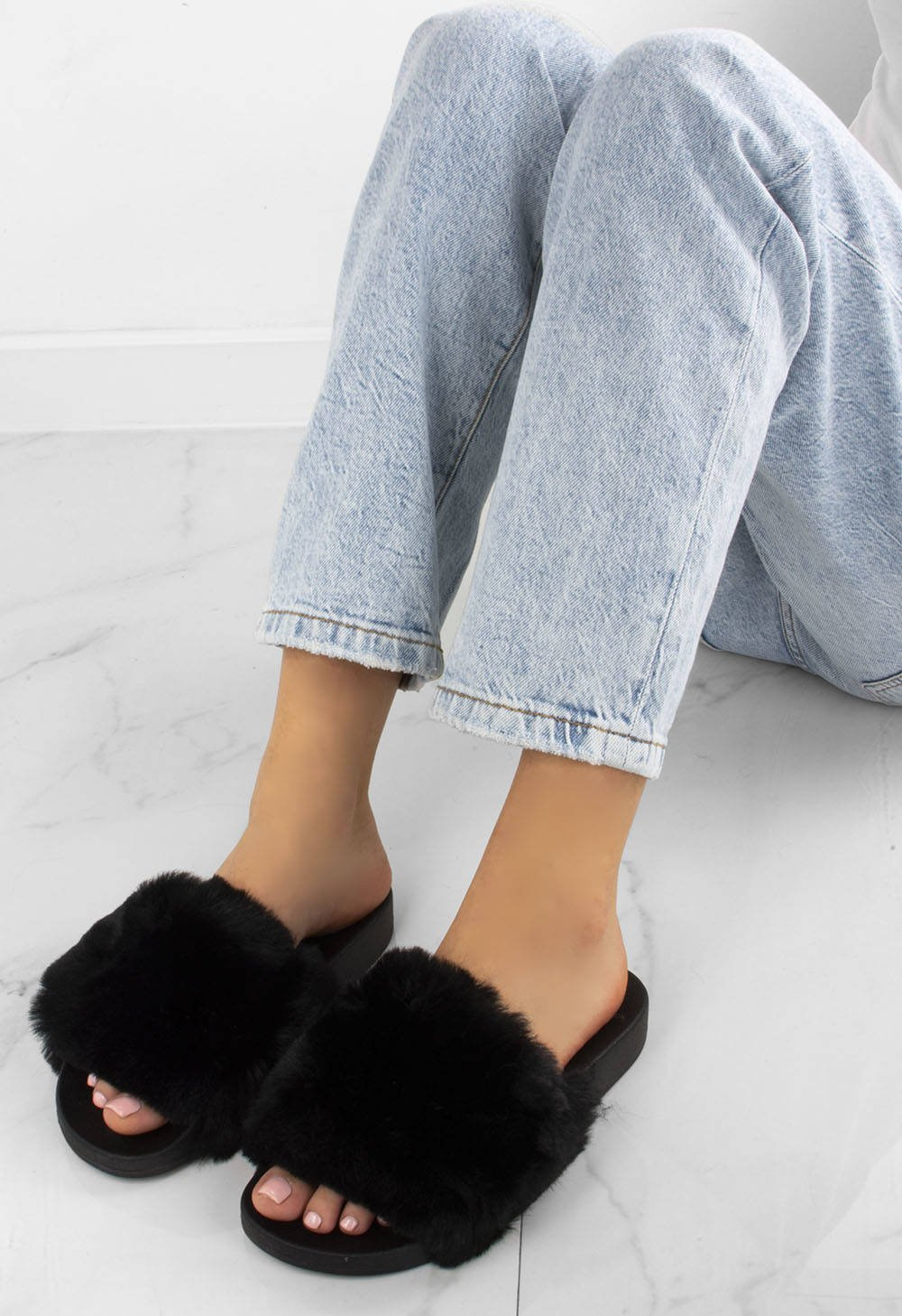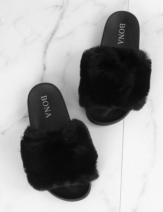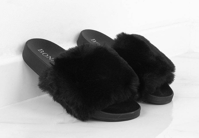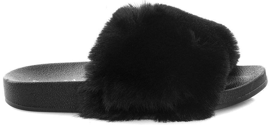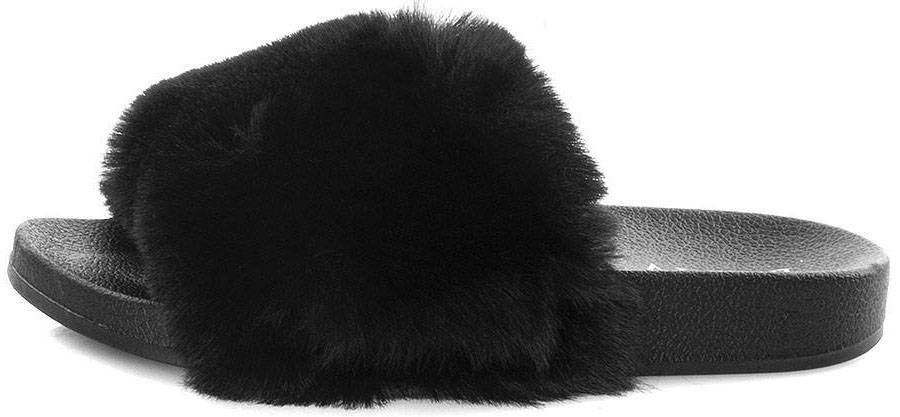 Klapki damskie wykonane z tworzywa gumowego. Model posiada ozdobny, futerkowy pasek. Wygodne na co dzień!