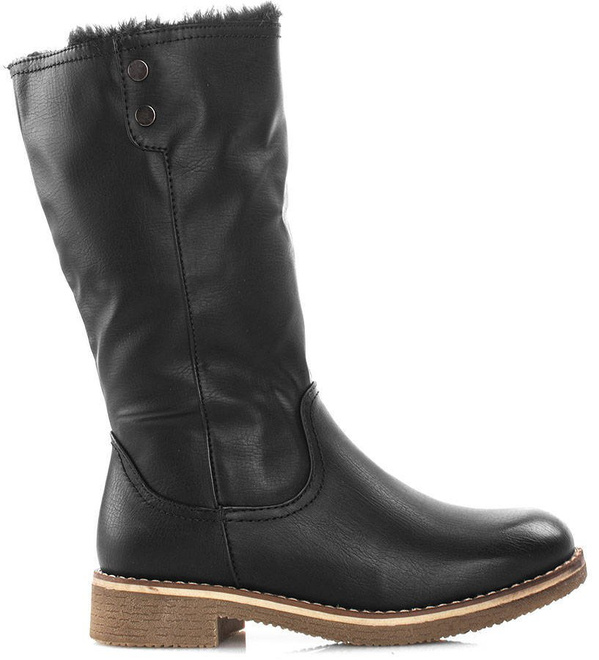 CZARNE OCIEPLANE BOTKI SKÓRZANE KOZAKI ZIMOWE TINNA